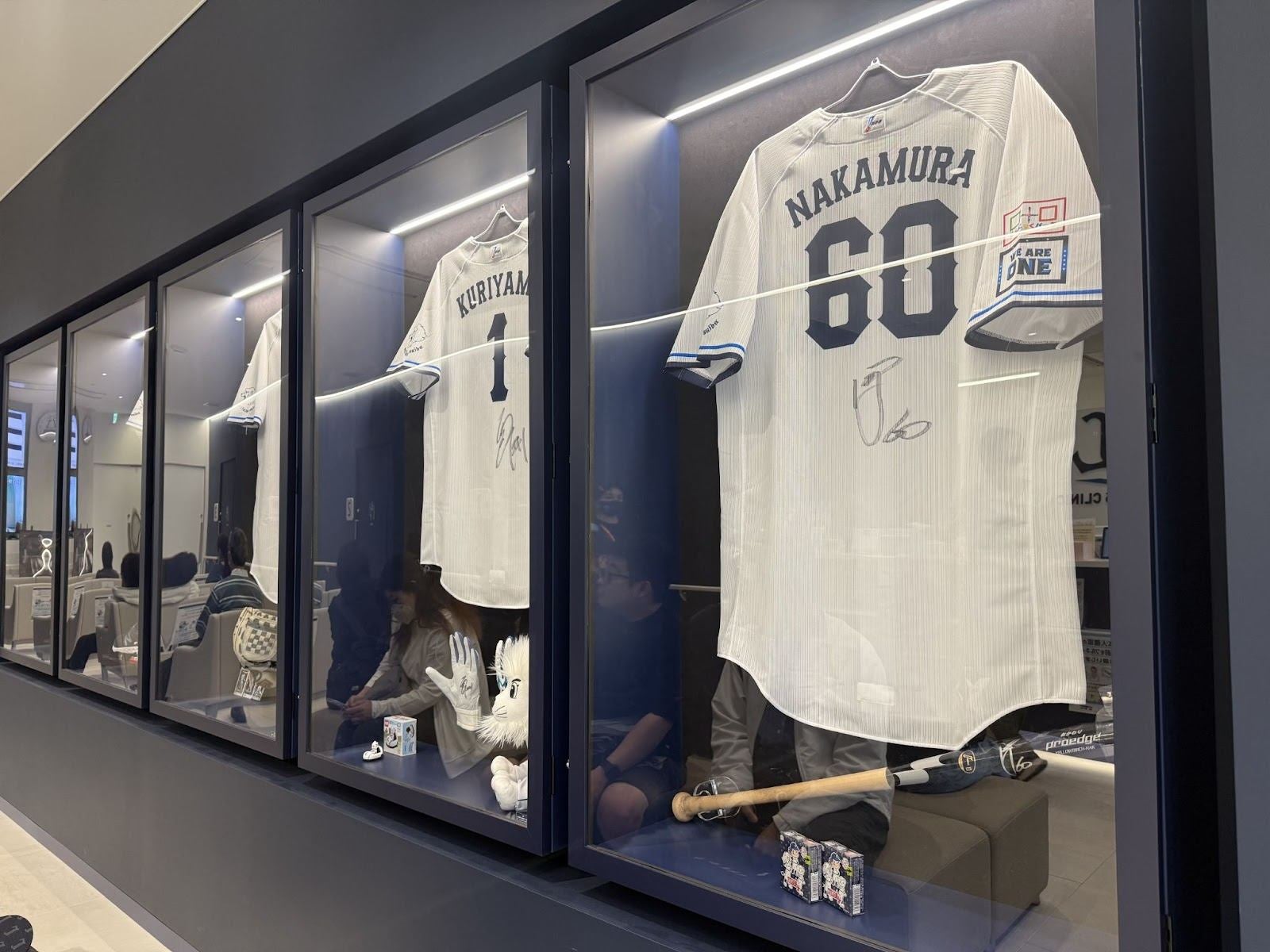 内装にも力を入れており、中に入るとレジェンドブルーで統一された空間が広がる。選手のサイン入りユニフォームや使用済みのバットや手袋などが飾られ、ミュージアムに来たかのような高揚感も味わえる。