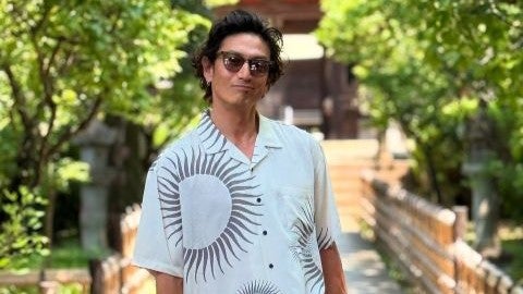 「肌触りの良いテンセルを使用し、日本向けにリサイズされたボックスシルエット、胸ポケット付きでストレートテール仕様のオープンカラーシャツです。太陽モチーフの開襟シャツが出て嬉しい〜。太陽モチーフでもこのくらいのカラーなら着やすいし、合わせやすい」と綴り、5枚の写真をアップした。