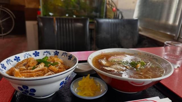 続けて「美味しかったわぁ。ここの中華そばむちゃくちゃ好き。きつね丼も美味しいーーー。」と綴り、投稿を締めくくった。赤い膳の上に並ぶ中華そばときつね丼から立ちのぼる湯気に、店内のレトロな雰囲気がぴったりと重なる。彼が絶賛する「みふき亭」の一杯は、ただの食事以上に、記憶に刻まれる“味の風景”そのもの。あたたかな出汁の香りや、ふわりと甘じょっぱい油揚げの存在感が、写真越しに伝わってくる。京都・東山に根ざした名店で味わう至福の時間が、ストレートに伝わってくる。