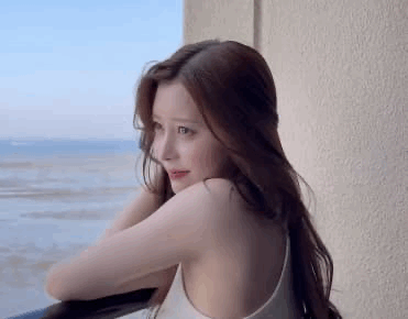 白のタンクトップを着用し、こちらを見つめてにっこり微笑む姿などを披露。