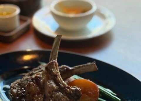 肉厚のラムチョップが放つ艶やかな焼き色に、照明と自然光が絶妙に溶け合っている。添えられた彩り野菜と控えめなスープ皿が、主役を際立たせる静かな演出となり、上質なレストランの気配を強く感じさせる。皿の上にあるのは料理だけでなく、時間と余白を味わう豊かさそのもの。彼女が切り取ったこの写真たちには、「特別」が確かに息づいている。