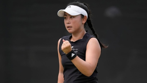 芝のコートで、力強いストロークやガッツポーズを見せる穂積にファンの注目が集まっている。