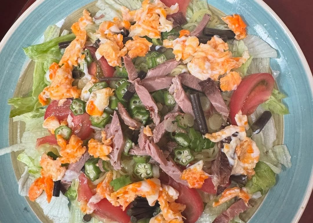 色とりどりの野菜が盛りつけられ麺が見えなくなっているが、断捨離中にここまでしっかり作る強いこだわりが感じられる。