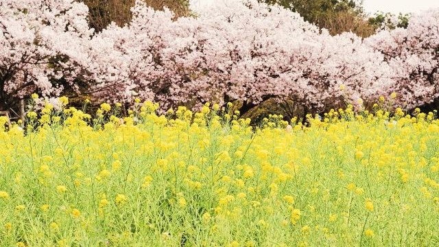 どうやらファンへ向けて、最新ショットを披露しているようだ。まるで水平線が空と海を分けるように、花の水平線が菜の花と桜を分けている。とても美しい写真に仕上がっている。
