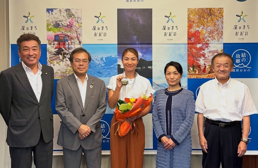 その喜びを胸に、地元・福井県大野市の大野市長を訪問し、表敬を行ったと綴った。