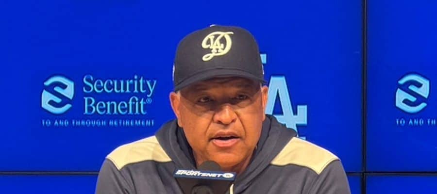 試合後、取材に応じたドジャースのデーブ・ロバーツ監督【写真:上野明洸】