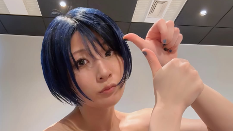 髪を青く染め、クールな視線を送る安納の姿にファンの視線も釘付けのようだ。