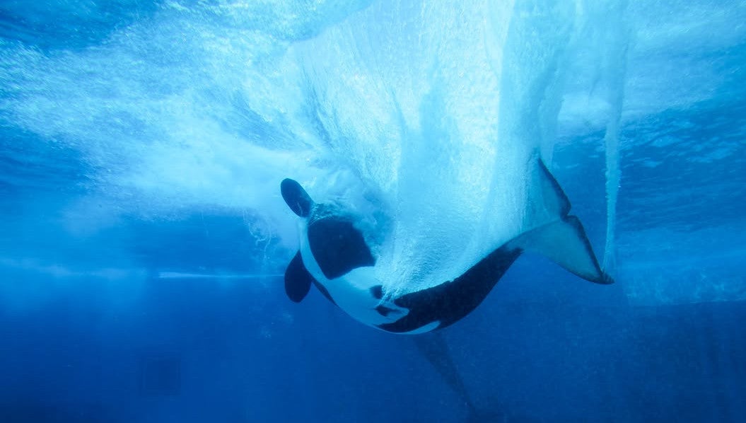 シャチが助走をつけて飛び出し、着水した瞬間の写真を公開した。これは「ルーピングキック」と呼ばれるもので、無数の気泡で一面が真っ白になるほどの迫力。「シャチの大きさとパワーに圧倒されます」と綴った。