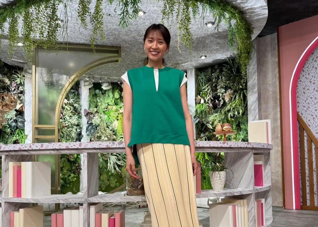 「衣装紹介です!パキッと綺麗なグリーンでした。スカートも素敵でした」と綴り、最新ショットをアップ。