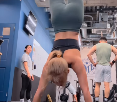 【画像】倒立と多彩なトレーニングスポーツタレント、フィットネストレーナー、パルクールアーティストの田辺莉咲子が23日、自…