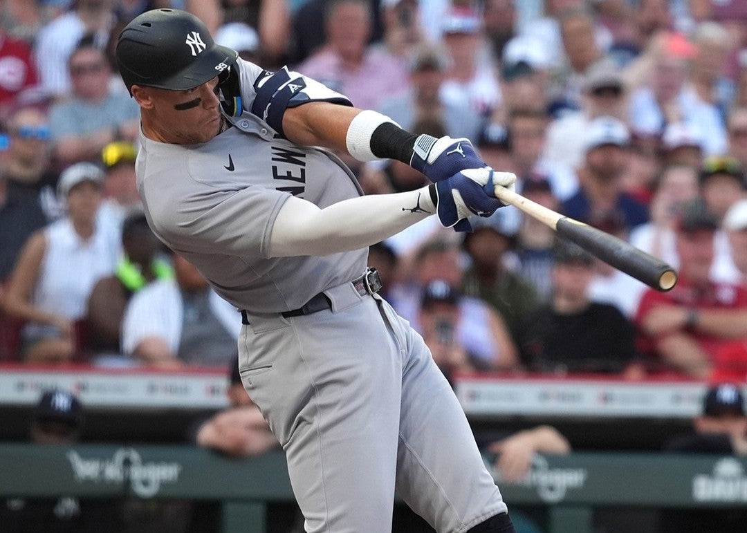 「ヤンキース、オールライズ!アーロン・ジャッジがレフトスタンドへ今季第28号ホームラン」と綴り、最新ショットをアップ。