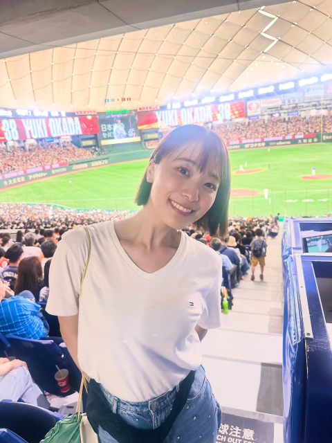 「私もチームを応援したい!!」"全国お天気キャスター総選挙4位"激カワ気象予報士、"巨人vs西武戦"観戦の可愛すぎる応援ショットにファン歓喜!