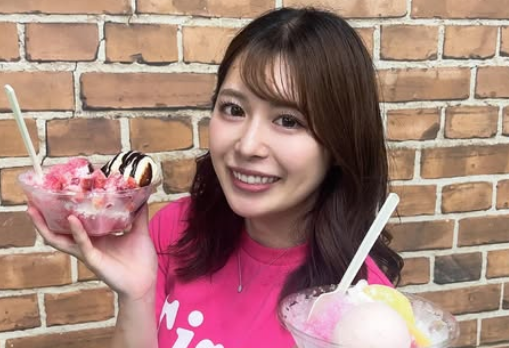「ずっと食べたかった選手コラボのかき氷」と綴り、2枚の最新ショットを公開した。
