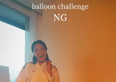 「失敗は成功の母だよね〜」と綴り、バルーンチャレンジとして風船を蹴り割る動画を公開。