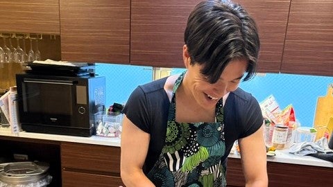 「家にきた南波アナが女性料理研究家みたいになっとる」という言葉とともに、 TBSアナウンサーの南波雅俊の写真を投稿。様々な野菜を前にオシャレなエプロンを着けた姿は、たしかに女性の料理研究家のような雰囲気がある。笑顔で包丁を操る様子からも、かなり料理上手なのが伝わってくる1枚だ。