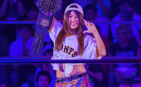 「12球団制覇シリーズ。後楽園大会はジャイアンツユニを着て入場しました」と報告し、リング上でユニホームを身にまとった姿を披露した。