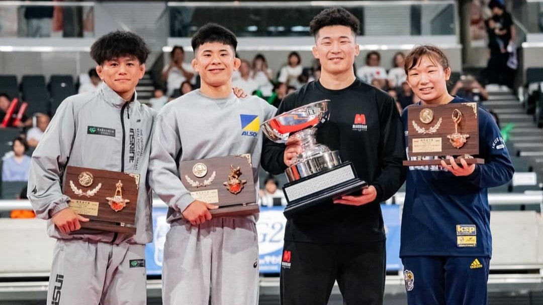 【画像】「明治杯を手にした金メダリスト」世界選手権へ向けて勝負はここからレスリング男子グレコローマン・東京五輪金メダリス…