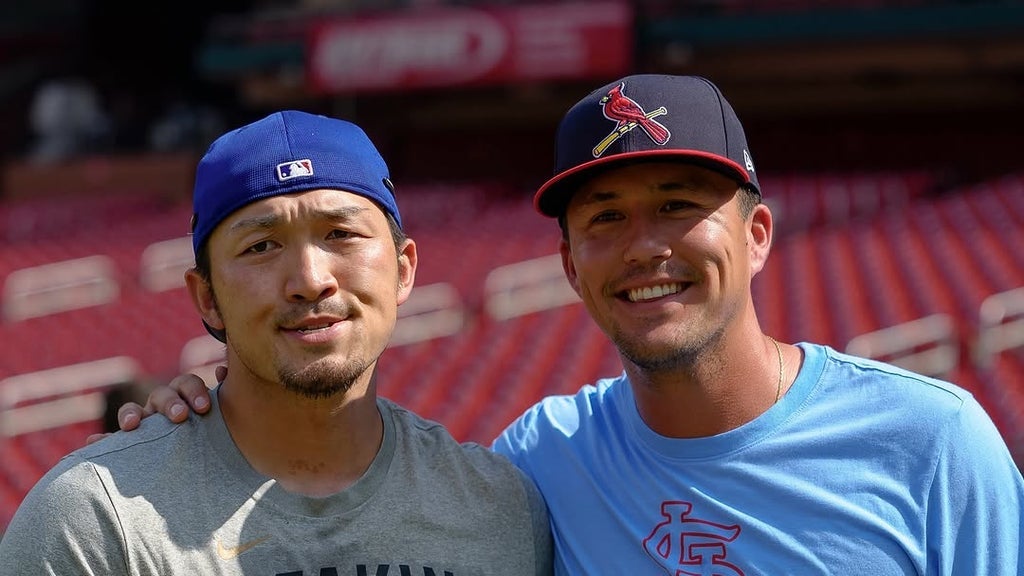 投稿では、カブスの鈴木誠也選手とカージナルスのヌートバー選手のツーショットが公開された。写真には肩を並べて笑顔を見せる姿が収められており、動画では2人がハグして仲良く抱き合う様子も映されている。和やかな雰囲気が伝わる一方で、鈴木選手の変顔にも注目が集まり、ファンの間で話題となっている。