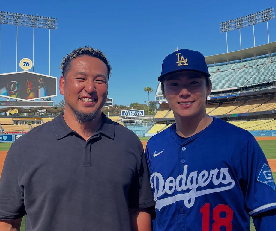 投稿では、中島がオリックスバファローズ時代にともにプレーした、ロサンゼルス・ドジャースの山本由伸と現MLB記者の鈴木優の姿が確認できる。