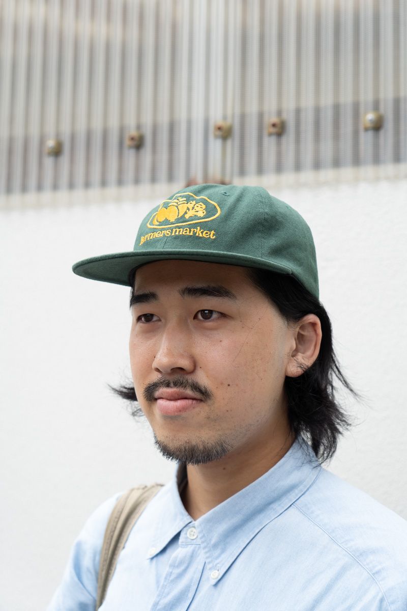 シャツ=ポロ ラルフ ローレン パンツ=ユニクロ シューズ=ニューバランス 帽子=古着 バッグ=ダルトン 腕時計=ヴァーグウォッチカンパニー リング=ヴィンテージ