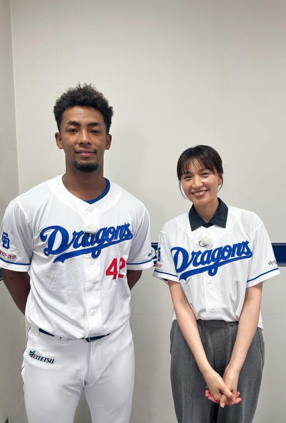 写真には、お揃いのドラゴンズユニフォームを着た浅尾とブライト選手が笑顔で並ぶ姿が写っており、インタビュー時の和やかな雰囲気が伝わってくる。浅尾は投稿内で「一つ一つの質問にとても丁寧に答えてくれた」「素敵な方ばかりで毎回感動」と感謝の言葉を添え、番組への出演に対する思いをつづっている。