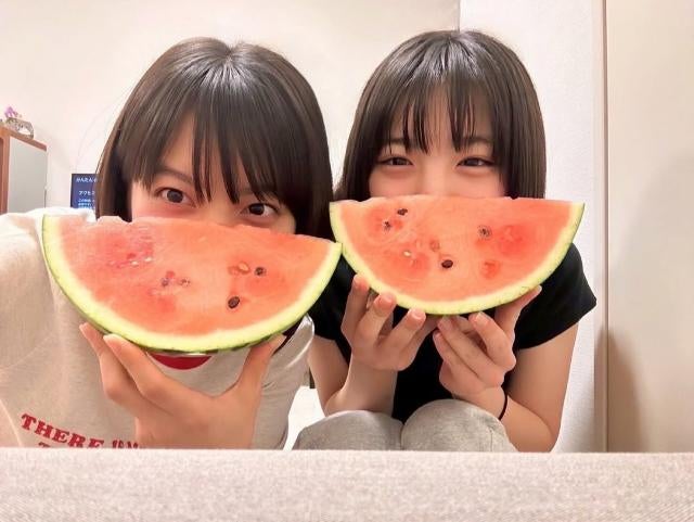 當真あみは、共演経験のある藤﨑ゆみあとともに大玉スイカを頬張る自然体なツーショットを公開。