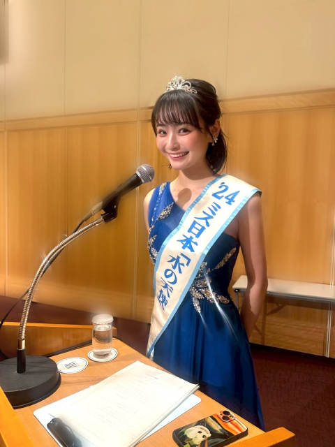【画像】ティアラ&ノードレスでにっこり可愛すぎる笑顔!2024年「ミス日本・水の天使」で女優の安井南(@yasaimin…