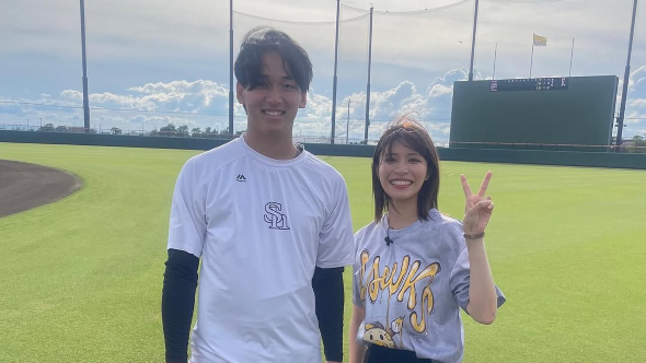 福岡ソフトバンクホークスに所属する投手・前田悠伍との、笑顔のツーショットにファンの注目が集まっている。