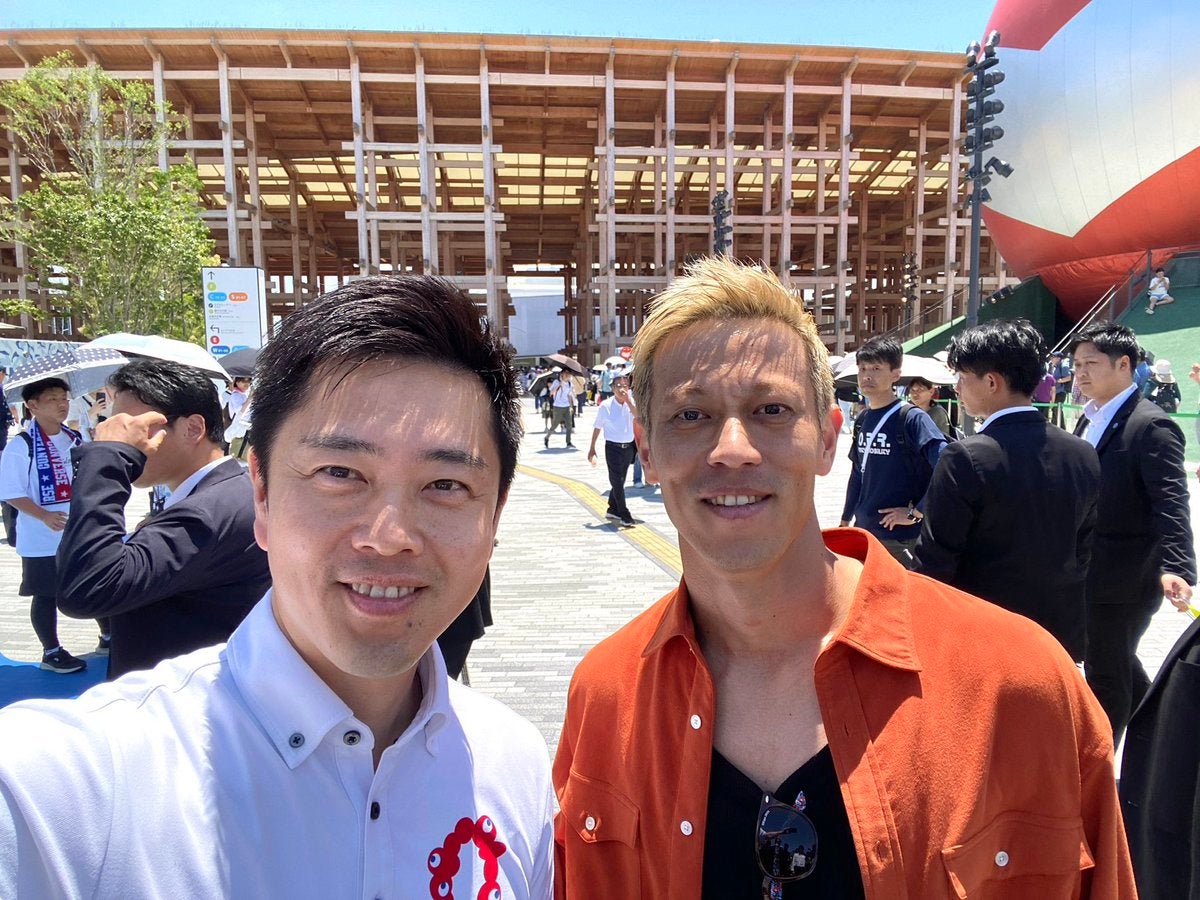SNS上では「本田圭佑、万博に来てたの!?」「吉村知事とのツーショット激アツ」「やっぱりオーラすごい」といった声が寄せられた。