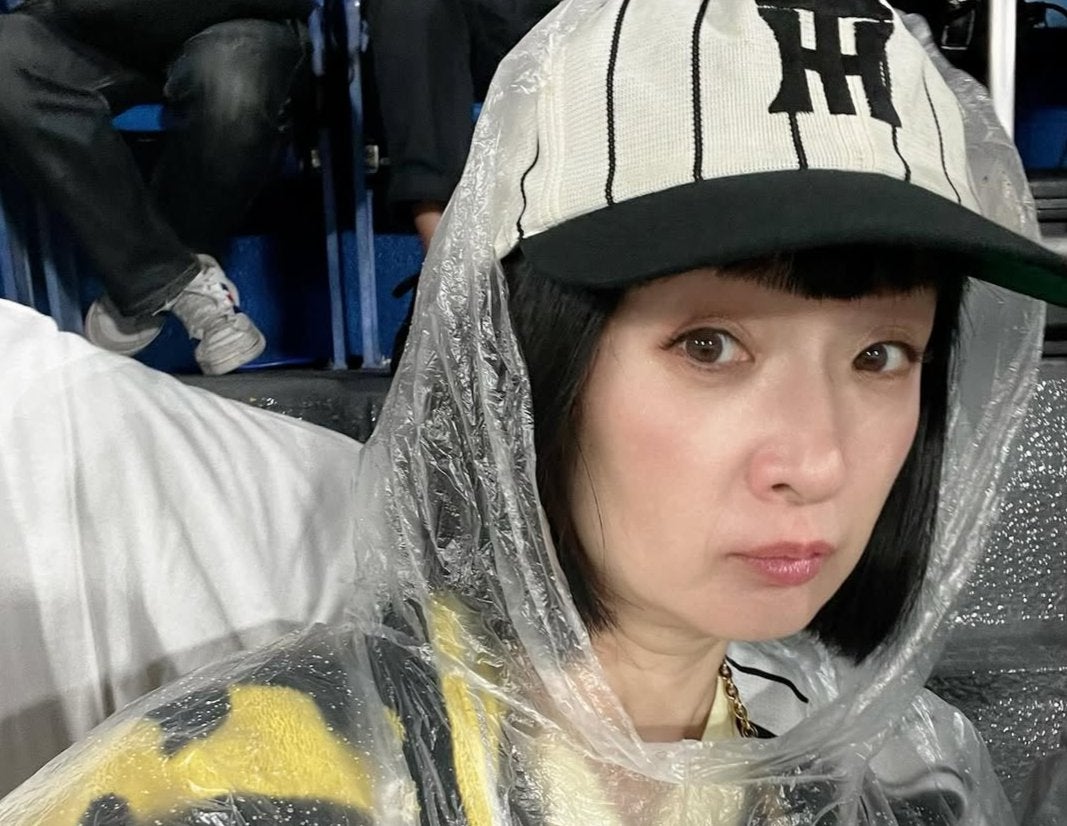 タレントの千秋(@chiaki77777)が神宮球場でヤクルト対阪神の一戦を現地観戦。手のひらサイズのレインコートで雨に備え、試合中には球場モニターに自身出演のCMが流れ、嬉しさもひとしおだったという。