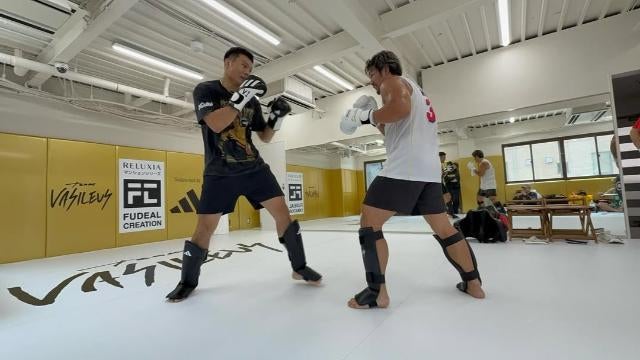 ジム内でミットを叩く姿が今後の挑戦を予感させるものになっている。