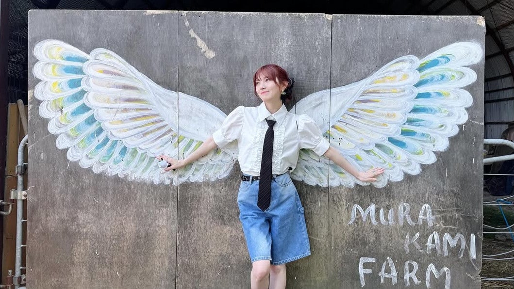 岡田は、大きな羽のイラストに背中をぴったりとくっつけて楽しそうな笑顔を見せている。背中から色鮮やかな羽が生えたかのようなショットに、ファンからは多くの反応が寄せられている。