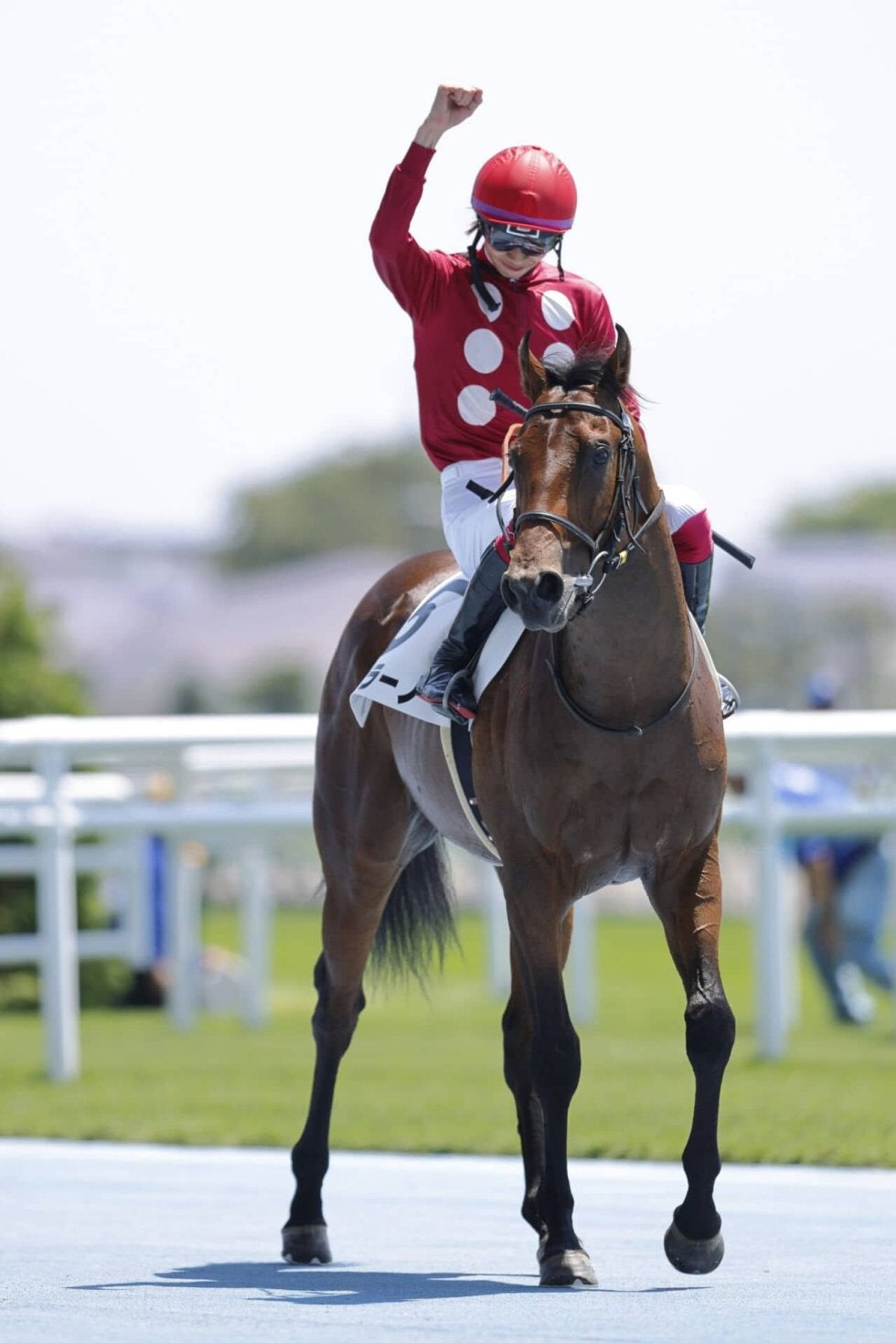 松本大輝騎乗の3番人気、フィオラーノが嬉しいデビューVを飾った。レースでは好位2、3番手をスムーズに追走。ロスなくラチ沿いを立ち回り、直線では上手く開いたスペースを突いて鮮やかに抜け出した。