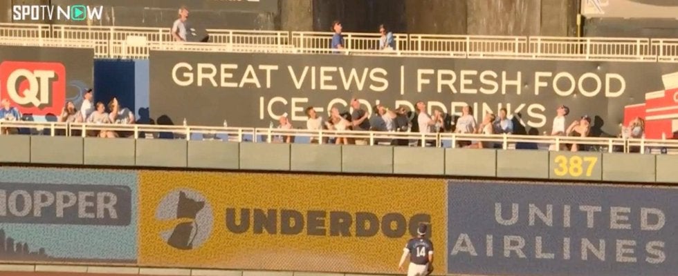 2試合連続となる第29号の特大ホームランに、確信したのは外野手も同じだった。この試合でライトを守っていたカグリオンは、打球を見上げながら定位置から追いかけたが、ウォーニングゾーン手前でスピードを緩め"諦めモード"に。この時点ですでにスタンドインを確信していたかのようだった。直後、ボールがスタンドに入ったのを確認すると、フェンス下部を軽く蹴り上げ、「ちぇっ」とでも言いたげな様子で踵を返した。
