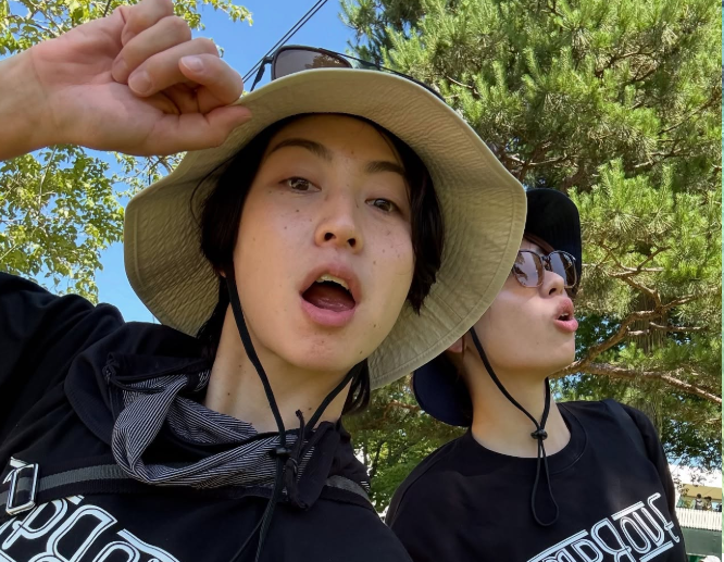 投稿では、「最寄駅からシャトルバスが30分かかる」といったハプニングも振り返りつつ、「暑いし~最後2時間くらい見れたら良いよね!」という会話を交わす様子が記されている。写真には木陰の下でハットとお揃いTシャツ姿の2人が、自撮りフォームで楽し気にポーズを取る様子が捉えられており、穏やかな初夏の観戦シーンが伝わってくる。