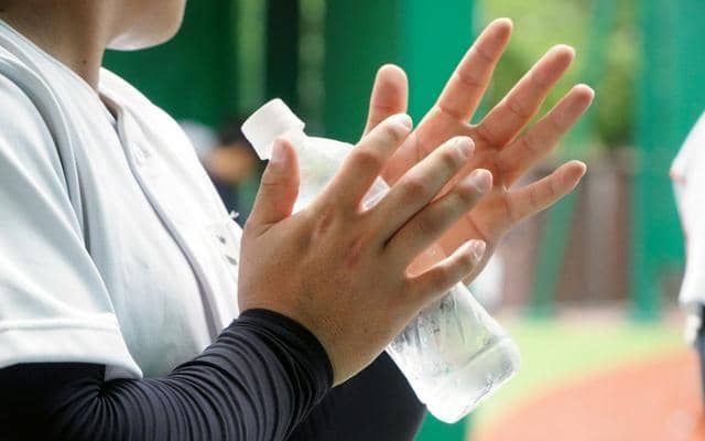 手のひら冷却やアイスバスに入ることなどによって体を外部から冷やし、「アイススラリー」と呼ばれるシャーベット状の飲み物などを摂取することで体の内部からも冷やしていく。練習や試合の前後、プレーの最中などタイミングに応じて、体を内外から冷やしていく方法を準備することが、暑い時期には求められます。