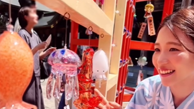 涼やかな風鈴の音色と、さわやかな浴衣スタイルの小池の姿にファンの注目が集まっている。