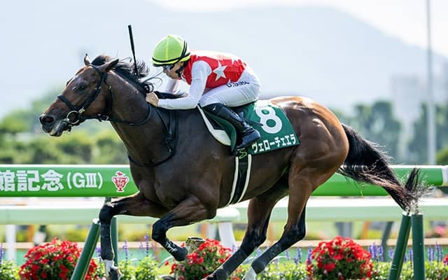 29日、函館競馬場で行われた第61回農林水産省賞典函館記念(3歳上・GIII・芝2000m)は、中団追走から4コーナーでハナに立って押し切った佐々木大輔騎手騎乗の10番人気ヴェローチェエラ(牡4、栗東・須貝尚介厩舎)が、好位から脚を伸ばした6番人気ハヤテノフクノスケ(牡4、栗東・中村直也厩舎)に1.1/2馬身差をつけ優勝した。勝ちタイムは1分57秒6(良)。