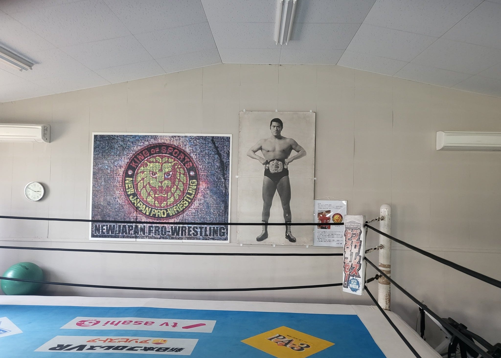 背景の壁には大きな写真が掲げられ、まるでリングを見守るような構図に。