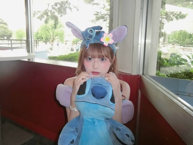 スティッチのぬいぐるみを抱きしめるなど、希空のスティッチ愛が伝わる写真となっている。
