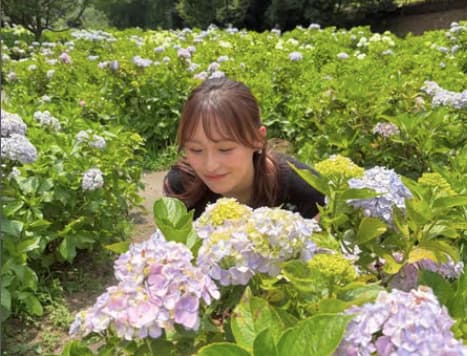 鈴木美羽が紫陽花とのツーショットを披露!明日から始まる月曜日に激励の言葉も | 話題の投稿