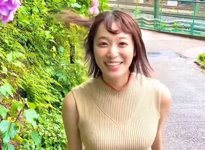 彼女は綺麗に咲き誇る紫陽花が映るエリアにて、元気ハツラツに登場。
