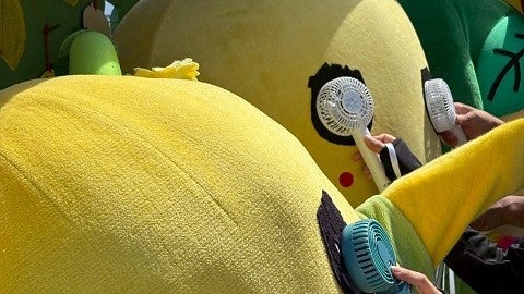「今日も暑くなるので熱中症対策してくださいなっしなー」というメッセージ、そして「#ダブル眼球冷却 #熱中症対策」といったハッシュタグとともに投稿されたのは、ふなごろーと見られるキャラクターとともに両目にファンで風を送られる姿の写真。熱中症対策はもちろん大事だが、なかなかインパクトのある光景である。