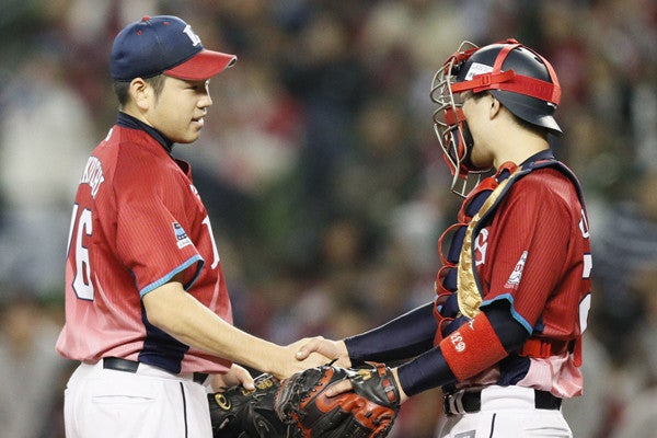 防御率、最多勝利を獲得した菊池と、4年連続で奪三振のタイトルを手にした則本が投げ合う舞台は、奇しくも11年前と同じ西武ドーム(現メットライフドーム)だった。そんなエース対決を盛り上げるのに、じつはこの球場はうってつけだ。今ではブルペンが室内に設置されているところがほとんどで、先発ピッチャーが行なう試合前のブルペンセッションをナマで観ることはなかなか叶わない。しかしここはブルペンが内野スタンドのすぐ前にあるため、一塁側で投げる則本、三塁側で投げる菊池を同時に視界の中に捉えることができる。