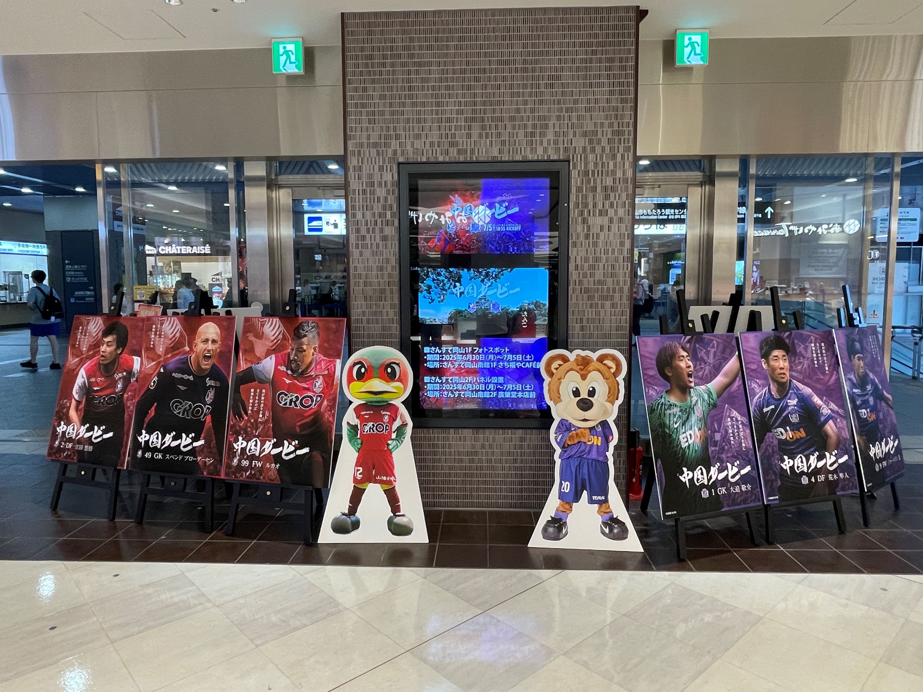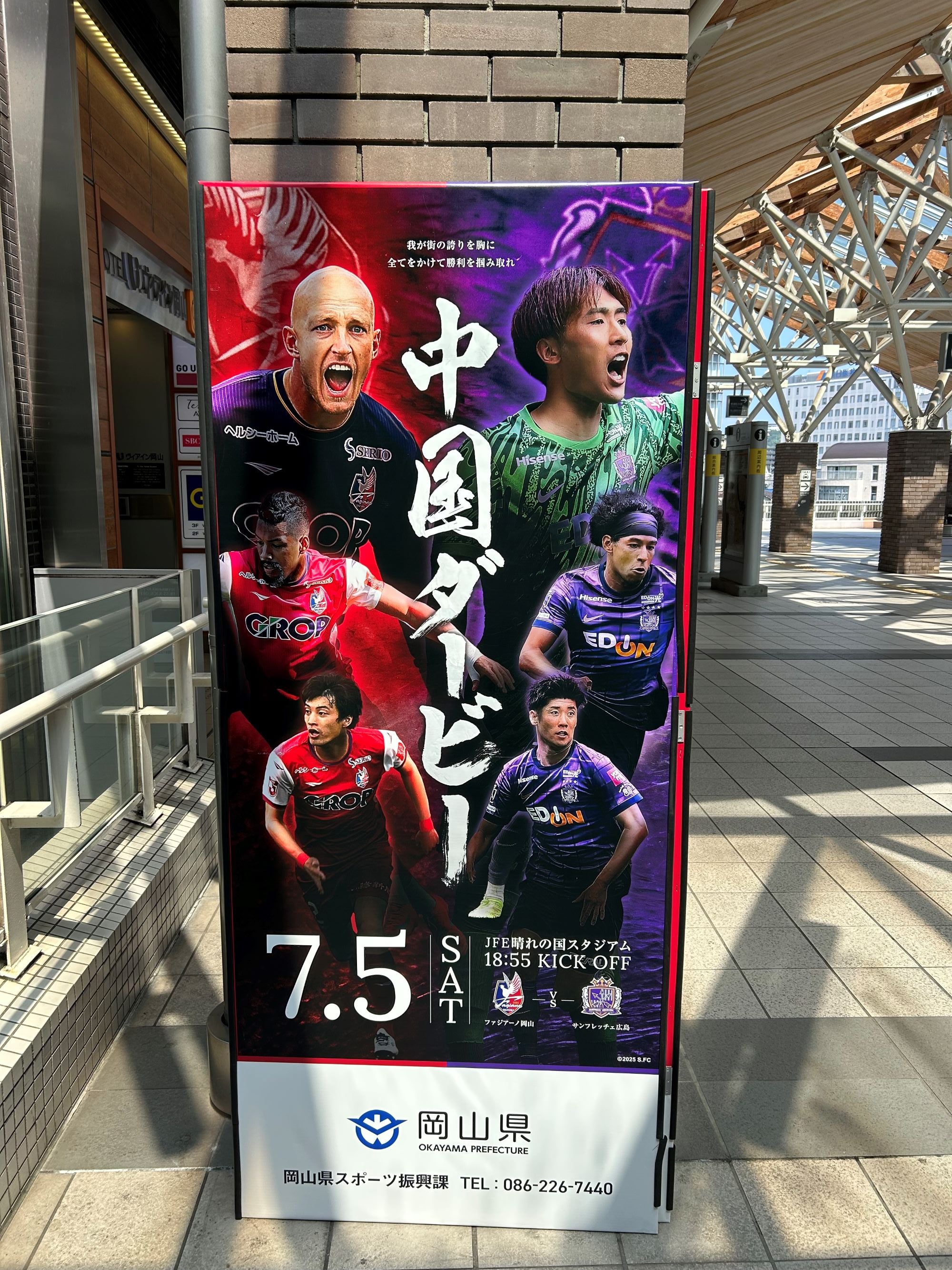 そしてスタジアム外では、試合当日までの1週間を「ダービーウィーク」と称し、岡山駅や駅構内の商業施設「さんすて岡山」でのぼりやポスターを掲示し盛り上げている。すべては「特別な1日」をお膳立てするためだ。