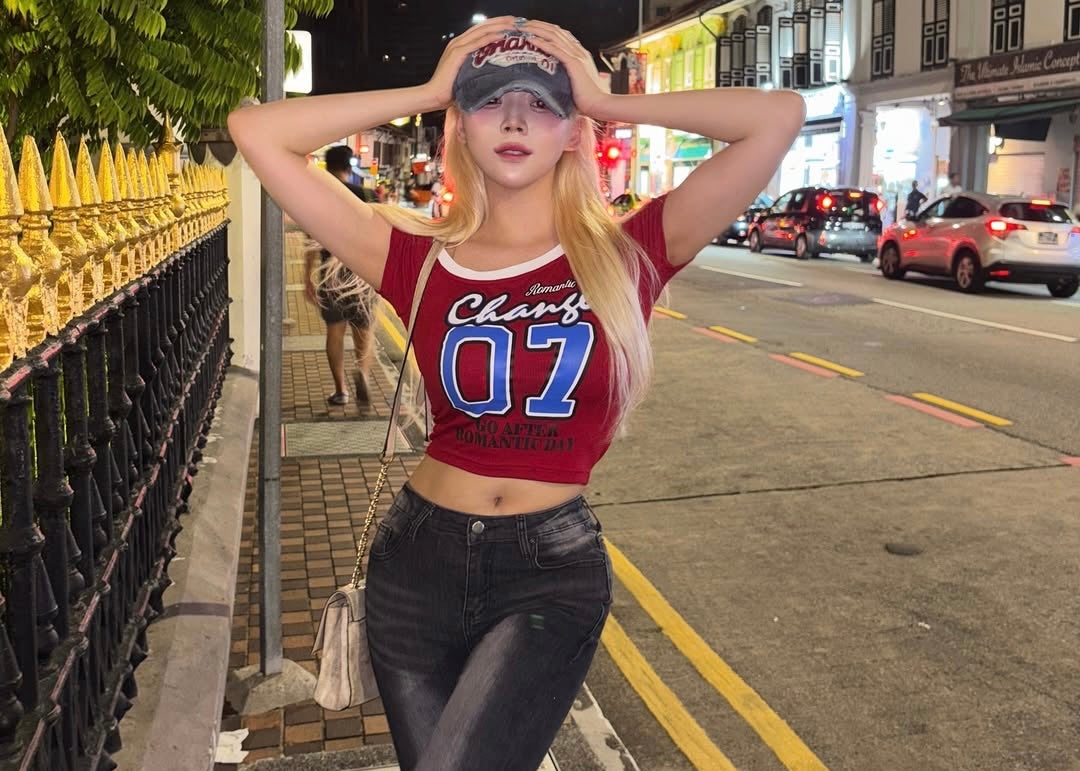 投稿には、クロップド丈のピタッとした赤Tシャツにデニムを合わせた、ヘルシーかつスタイリッシュなコーディネートのイェリンが登場。くびれが際立つ“砂時計ボディ”を惜しげもなく披露し、まさに「シルエットで魅せる」一枚に仕上がっている。