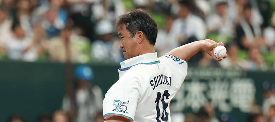 西武は29日にベルーナドームで行われた日本ハム戦で「ライオンズ75周年シリーズ」を開催。レジェンドOBとして潮崎哲也シニアアドバイザーと和田一浩氏が来場した。セレモニアルピッチで56歳の潮崎氏が投じた1球は「今もいい球放るなぁ」「テークバックが現役時代を彷彿させる。良いですね」とファンが注目した。