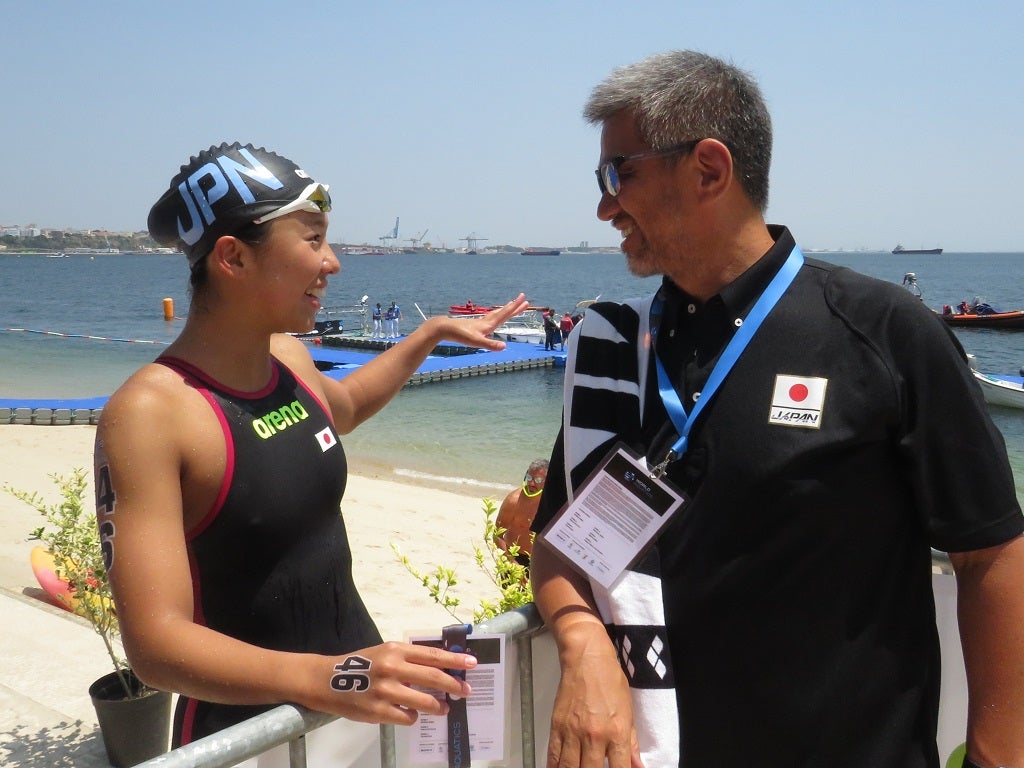 日本人選手にとって厳しい結果に終わった初日のレースについて、チームを率いる太田伸コーチは、「海水温が低くて、どの選手も苦しんでいたようです。日本人選手たちのトレーニングは十分に積めていましたし、通常であれば、ペース自体も先頭集団について行けるものだったと思います。実は今回の女子の優勝者のタイム(1:53:39.60)は、男子の優勝者のタイム(1:53:28.10)とほとんど同じくらいでした。そんな中で蛯名選手がスプリント賞を獲得したのは、高く評価できることだと思います。」と話した。