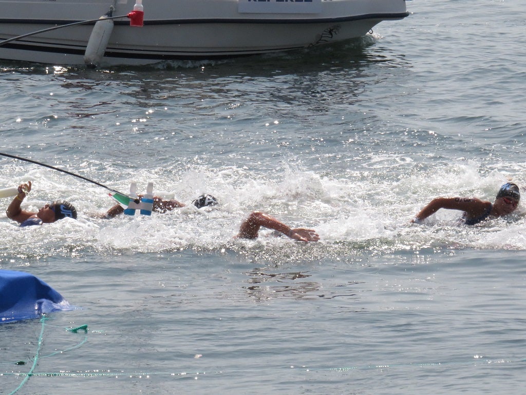 前日と比べて気温は若干高いものの、水温は前日とあまり変わらないコンディションの中でのレースとなった大会2日目は、男女とも3㎞ノックアウトスプリントの競技が開催された