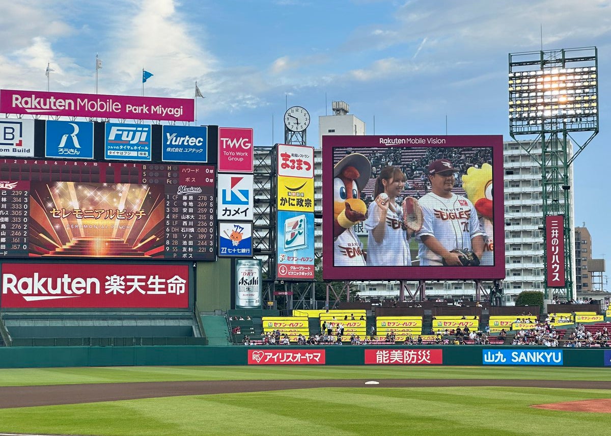 【画像】始球式を終え、楽天・捕手の石原 彪と笑顔で記念撮影SKE48の菅原茉椰が7月1日、自身のX(@maya_suga…